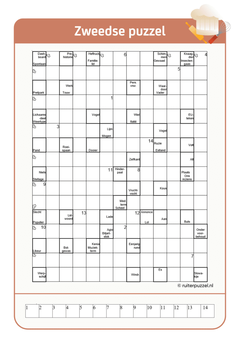 Zweeds puzzelen Lukt het jou om de puzzel op te lossen? Zoek in het schema naar een omschrijving waar je het antwoord op weet.